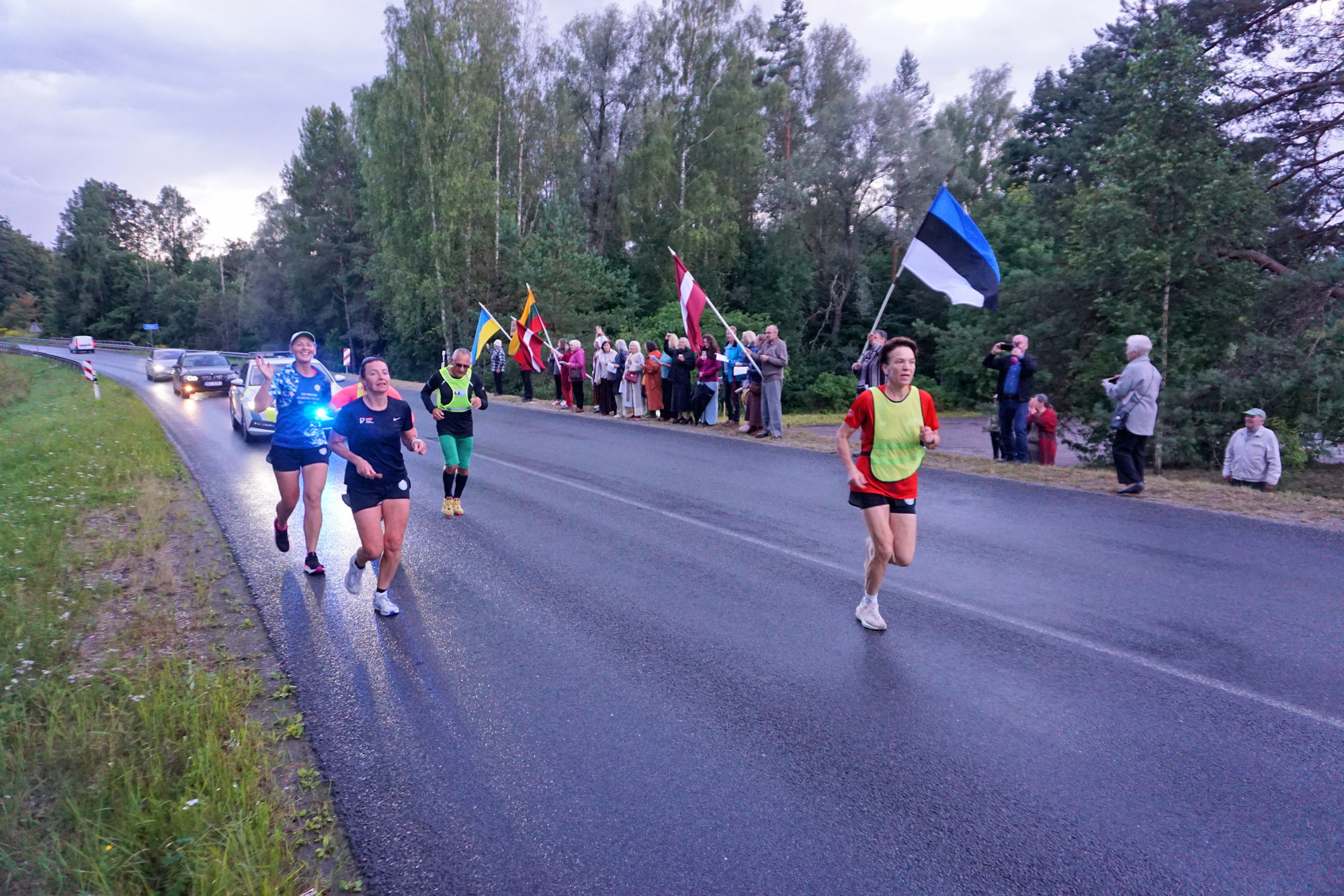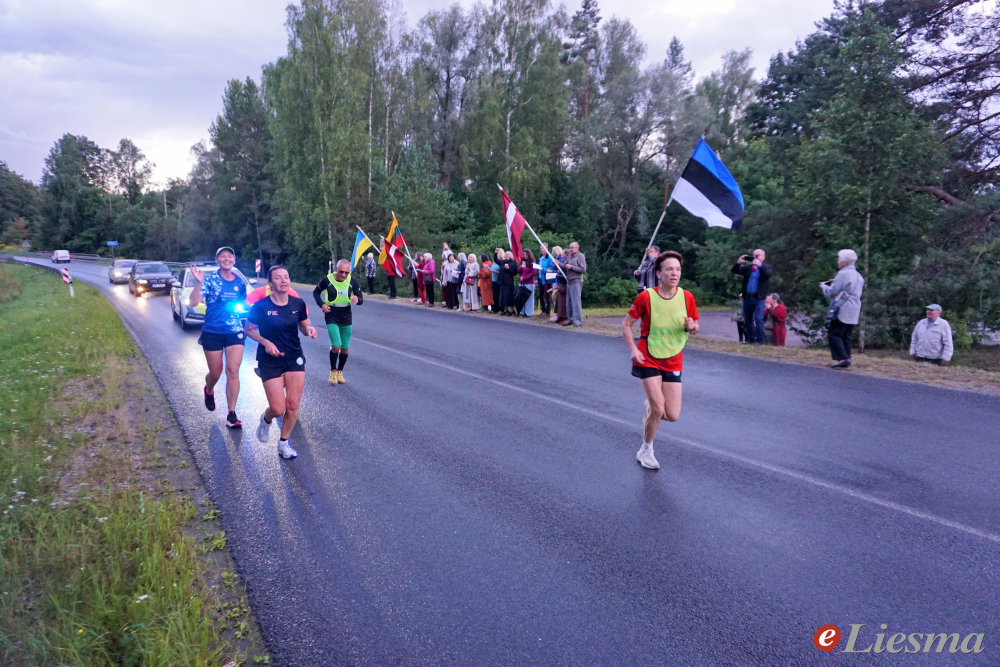 Pēc astoņiem vakarā šī pasākuma dalībnieki turpat šosejas malā ar plīvojošiem karogiem un ovācijām sagaidīja 34. Baltijas ceļa piemiņai veltītā skrējiena dalībniekus, kuri veica priekšpēdējo etapu pirms nakts atpūtas Valmierā, šajā etapā skrēja četras dāmas un kungs jau cienījamos gados.