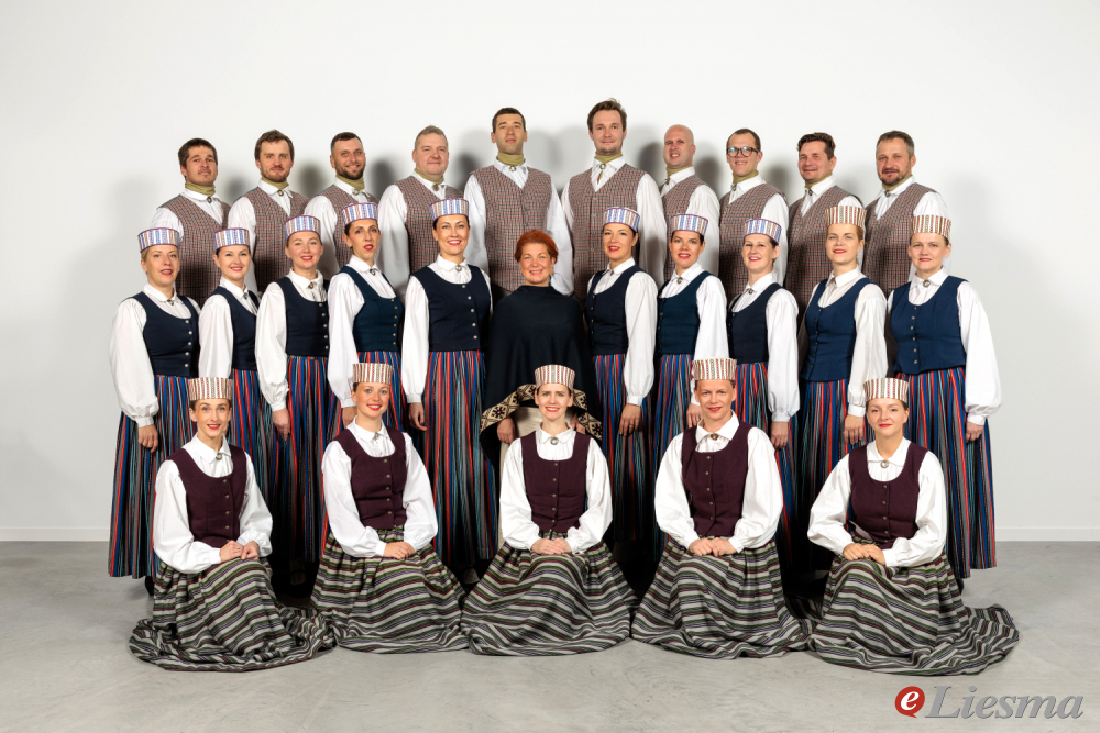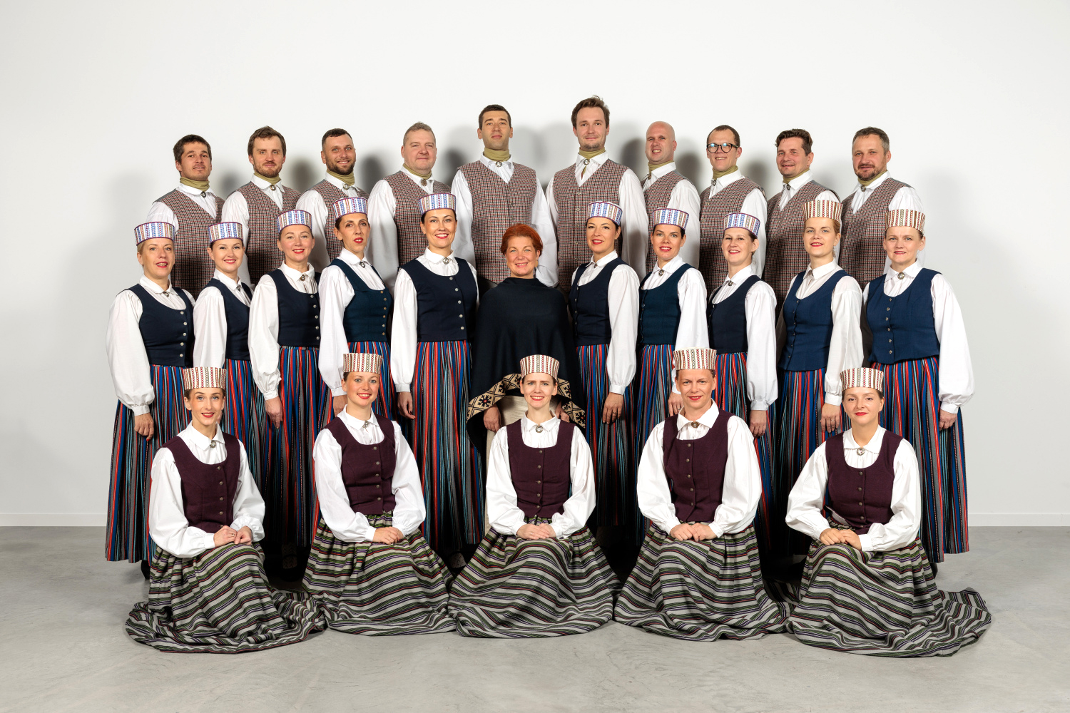Kocēnu kultūras nama vidējās paaudzes deju kolektīvs «Savieši» un vadītāja Ilona Migla. Uģa Brālēna foto