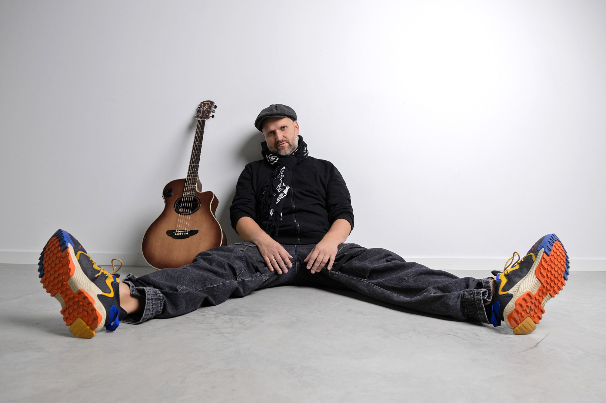 KLUSĀ DABA AR ĢITĀRU. Dziesminieks Mikus Frišfelds. Foto no Mikus privātā arhīva