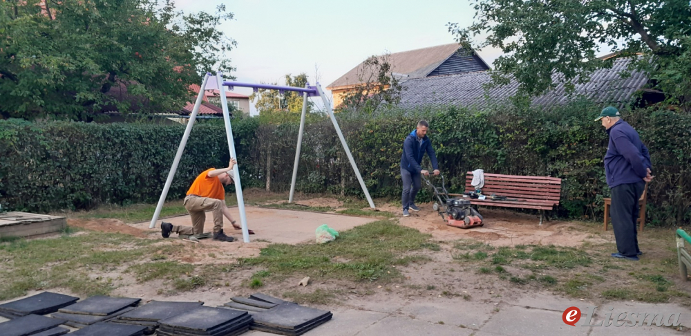 PROJEKTU ĪSTENOJOT, uzstādītas jaunas šūpoles Ziemeļu ielā 17B Valmierā. Publicitātes foto