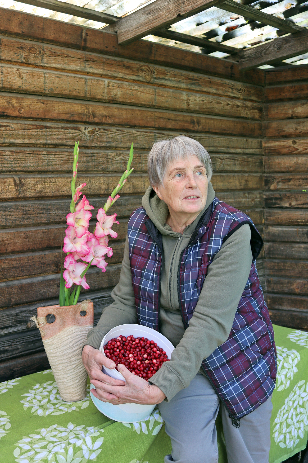 ANITA BERGA ar pašas lasītām dzērvenēm. Ārijas Romanovskas foto