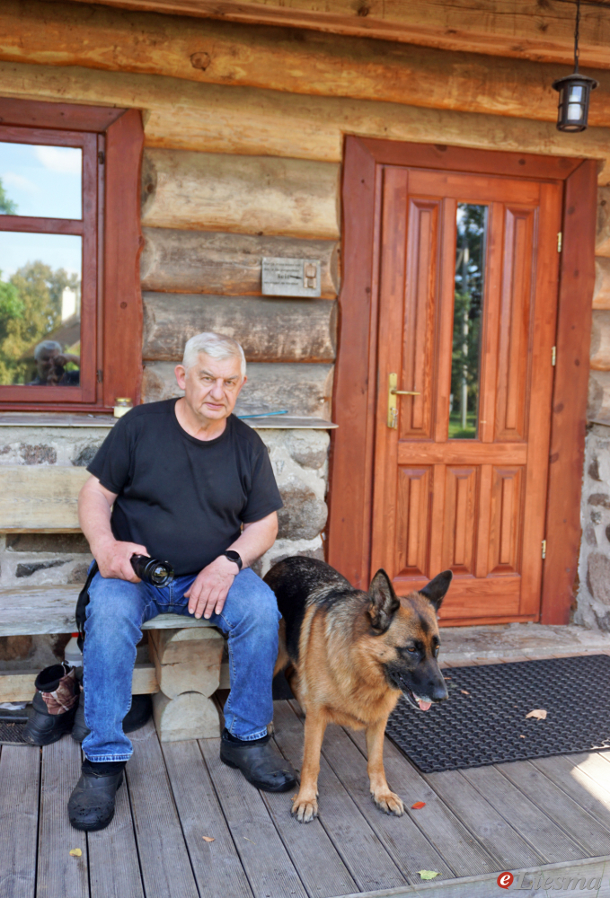 IKDIENA LIELĀKOTIES DIVATĀ. Vladimirs kopā ar ģimenes mīluli Teriju piesēdis terasītē pie savas pirtiņas.