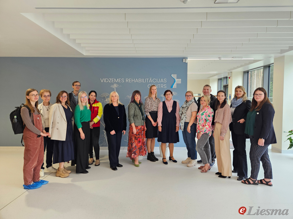 VIZĪTE VIDZEMES SLIMNĪCAS REHABILITĀCIJAS CENTRĀ: (no kreisās) Līna Orste, Inguna Ločmele, Marina Pjanova, Artūrs Pokšāns, Ieva Kreile, Inga Brente-Mieze, Lienīte Priedāja-Klepere, Indra Zaula, Anete Skujiņa, Inga Birkava, Ilona Rāviete, Jānis Timermanis, Lina Kļava, Madara Vītola, Santa Zaļjlova, Kristīne Matuka. Vidzemes plānošanas reģiona foto