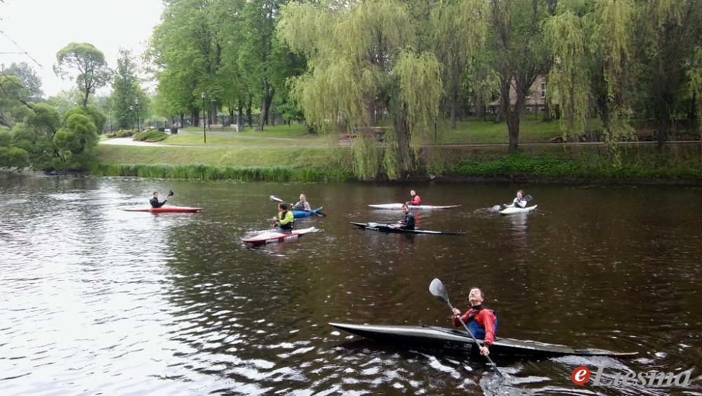 IZMĒĢINĀT AIRĒŠANU ar smailīti varēja ikviens, kurš ļāvās zinošu treneru padomam un pirmoreiz iemēģināja Dzirnavu ezeriņa ūdeņus. Foto no sociālajiem tīkliem
