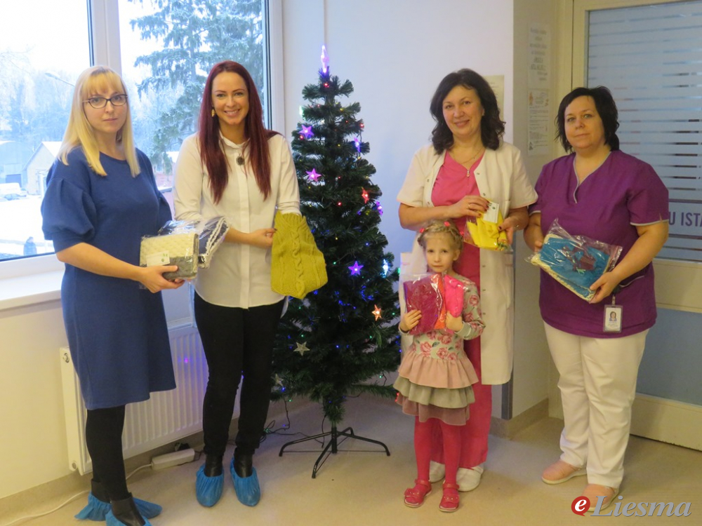 VISLABĀKIE VĒLĒJUMI ieadīti zeķītēs un cepurītēs. Svētku laikā jau kārtējo reizi tikušās Agita Kandavniece un Linda Vītoliņa ar meitiņu Loti no Sirds siltuma darbnīcas, nodaļas virsārste Ilze Eglīte un nodaļas virsmāsa Iveta Bērziņa. Vidzemes slimnīcas foto