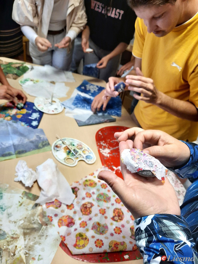 SPECIALIZĒTAJĀS DARBNĪCĀS var darboties radoši – šeit redzama akmentiņu dekupāža. Fonda «Iespēju tilts» foto