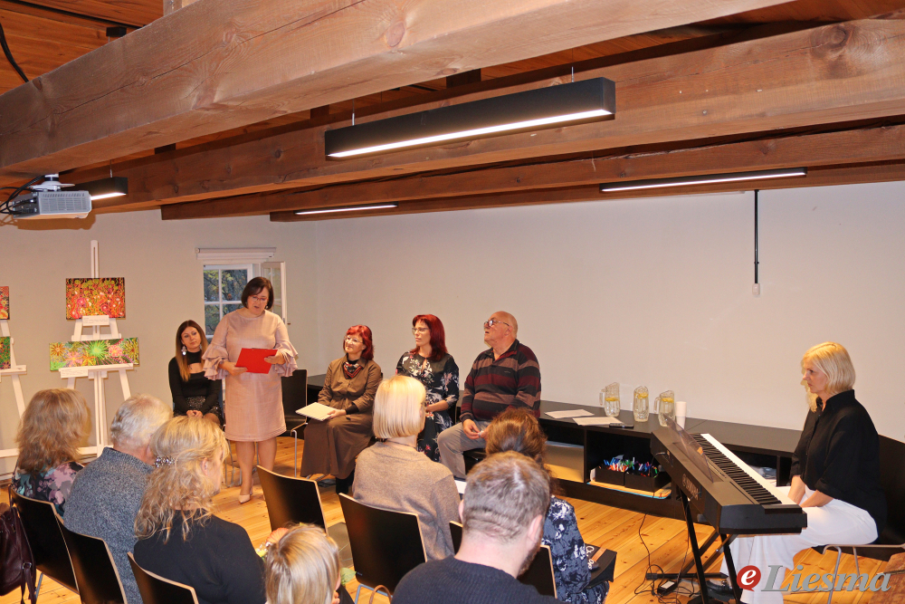 PASĀKUMĀ «MĀKSLAS MEDITĀCIJA». No kreisās: Līga Jermacāne, Ilona Fērmane, Agrita Gruzdiņa, Gunta Bole, Viktors Jakobsons un Dace Dēnava. Ārijas Romanovskas foto