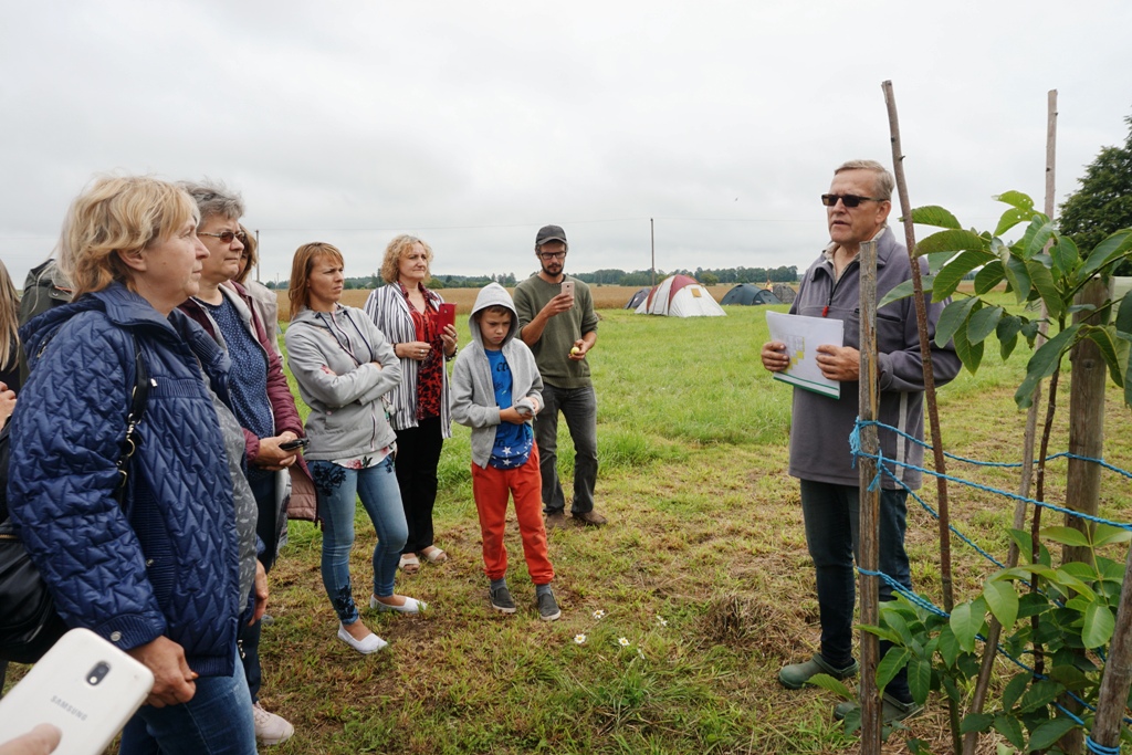 Eglons mums izrādīja savu vairāk nekā 13 ha lielo dārzu, kura ievērojamu platību aizņem plūškoku plantācija. Augļkopis nodarbojas ar plūškoku selekciju, veidojot mūsu klimata zonai piemērotāko augu hibrīdus. Selekcijas darbu viņš veic arī ābolu, bumbieru un plūmju audzēšanā, viņš ir izveidojis desmitiem jaunu šķirņu, un mums laimējās nogaršot saldus un sulīgus vasaras ābolus un vairākas plūmju šķirnes. Dārznieks pastāstīja daudzas svarīgas atziņas par plūškoku audzēšanu, dārzā mēs redzējām, kāda ir koku atšķirība, audzējot tos dažādās zemēs: mitrā – mālainā, sausā – smilšainā. Eglons nodarbojas ar plūškoku ogu pārstrādi, viņš uzsvēra, cik nozīmīga ir plūškoku ogu produktu vērtība.