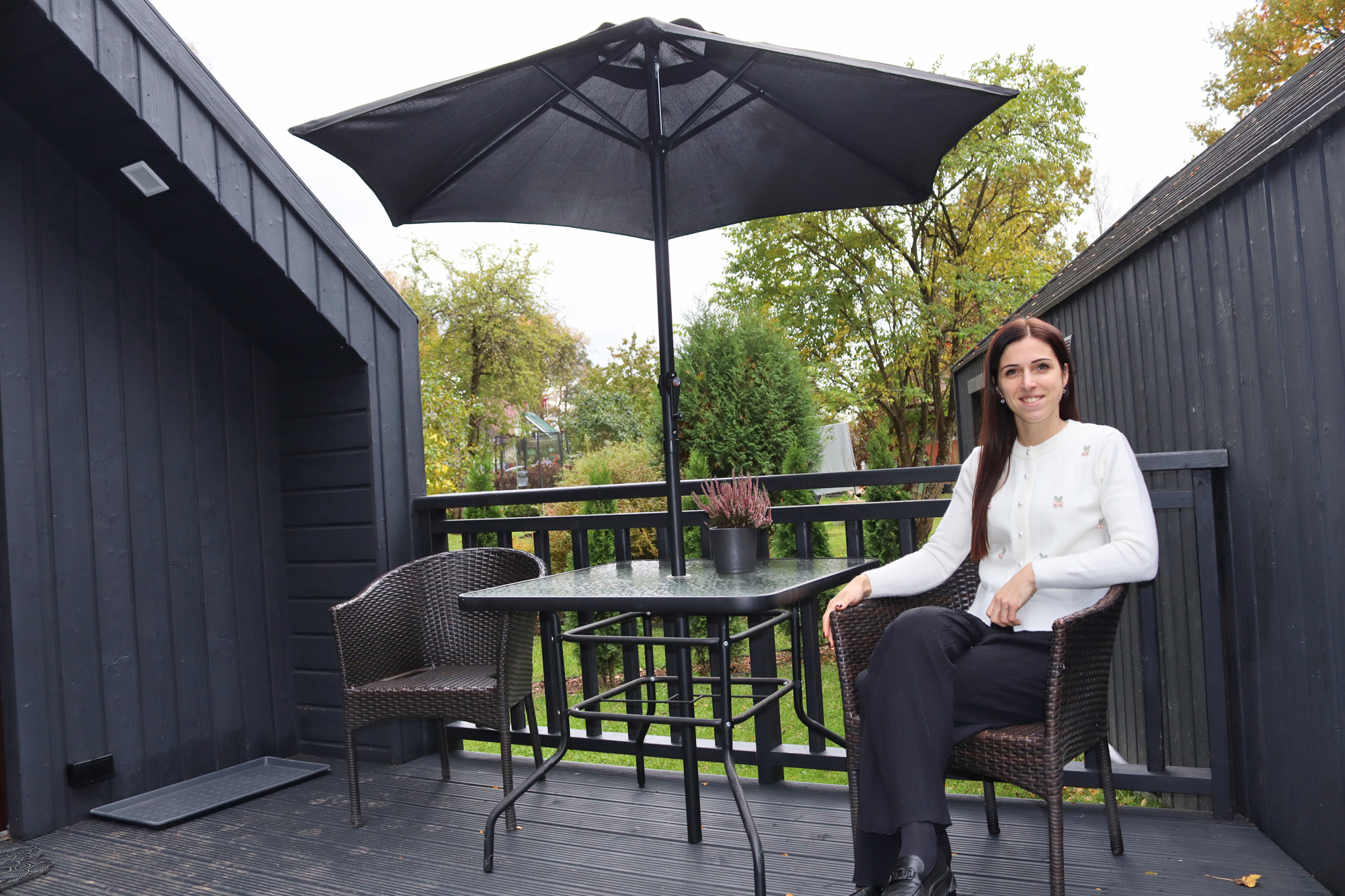 MADARA NARŅICKA namiņa terasē. Ārijas Romanovskas foto