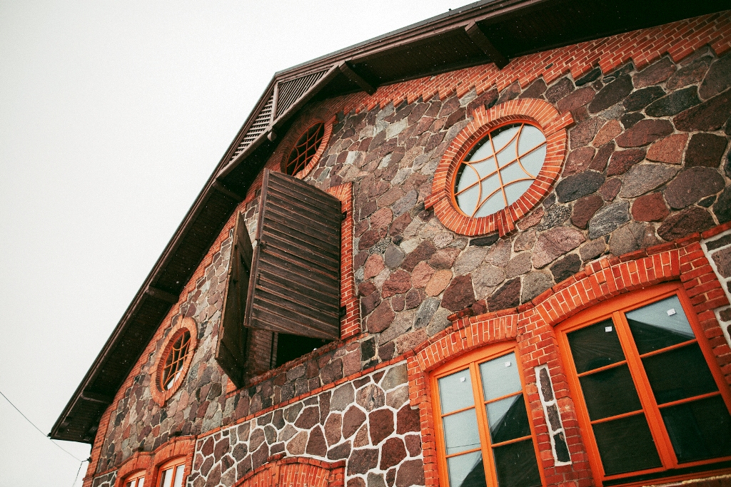 LOGI JAU VIETĀ. Lūk, atjaunojamā Kokmuižas brūža ēkas fasāde jau ar jaunajiem logiem. Valmiermuižas alus foto