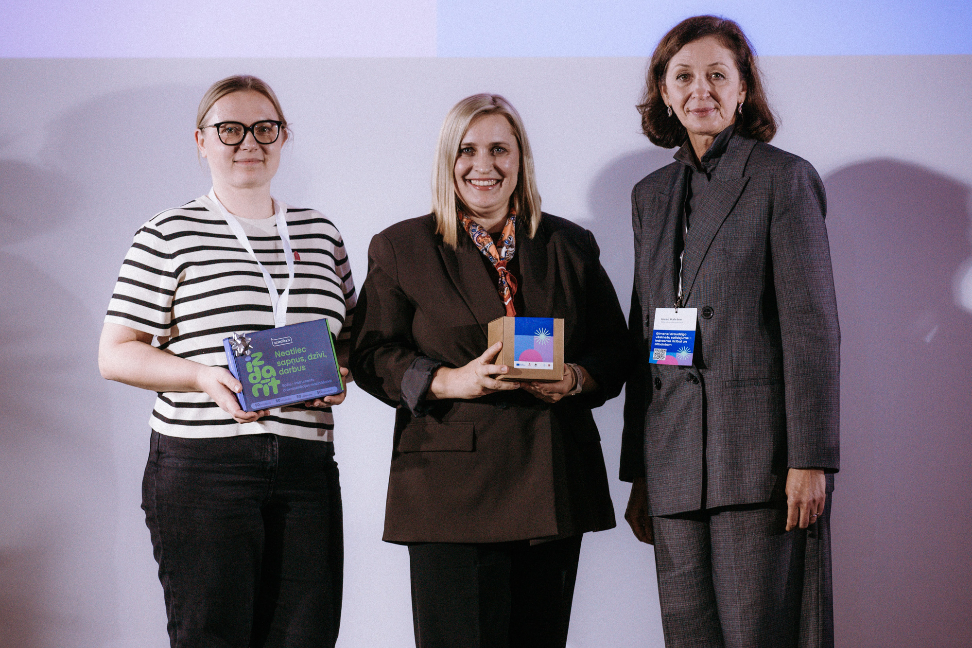 Attēlā no kreisās: Strenču PNS projektu vadītāja Ilona Rāviete, stratēģisko vadības procesu vadītāja Alīna Kitnere, Sabiedrības integrācijas fonda sekretariāta direktore Inese Kalvāne. Sabiedrības integrācijas fonda foto