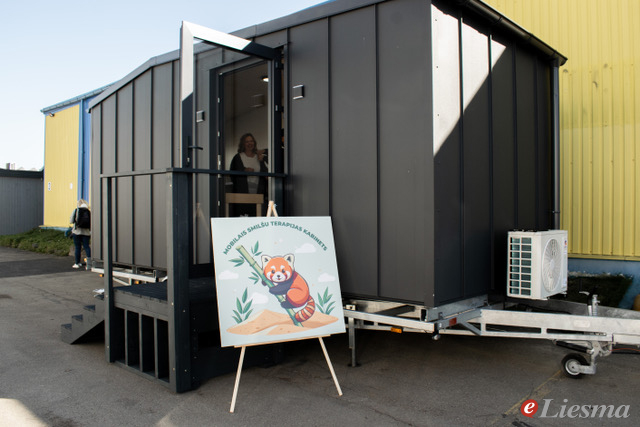 PĀRVIETOJAMAS UN ĒRTAS TELPAS, kurās satiekas smilšu terapeits ar bērnu, pusaudzi vai jaunieti, kura vajadzības cenšas izprast un atbalstīt, sniedzot psiholoģisku un emocionālu atbalstu tuvāk viņa dzīvesvietai. Publicitātes foto